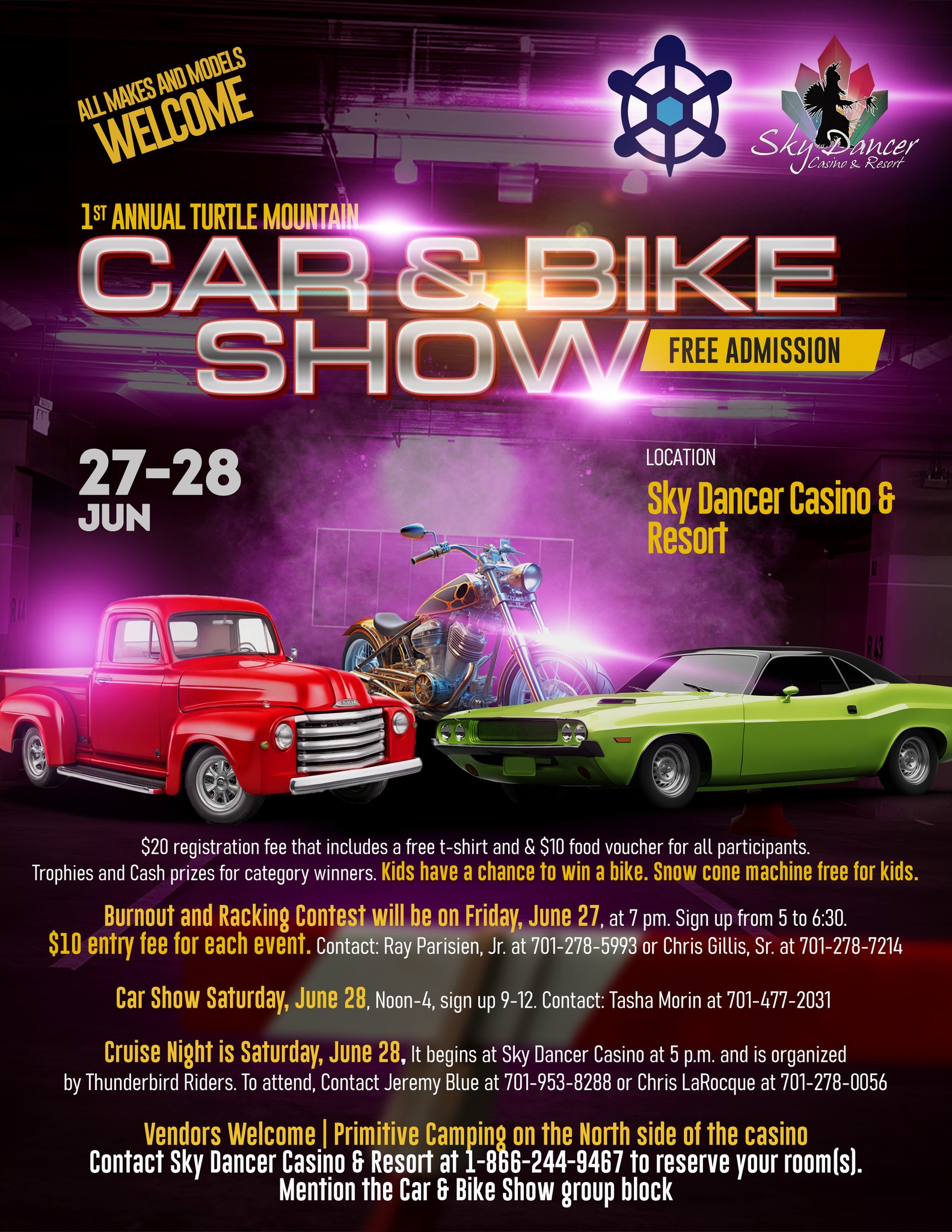 Sky Dancer Kids Day – Turtle Mountain Days 2025 Sky Dancer Grounds Monday, July 14, 2025 10 AM – 4 PM Get ready for a FUN-FILLED day for the kids — hosted by the amazing Sky Dancer Casino staff! Bouncy Houses Go Carts Kid’s Games Food & Drinks Mechanical Bull Bring the whole family and […]